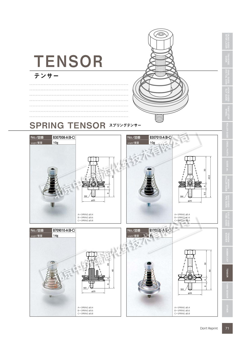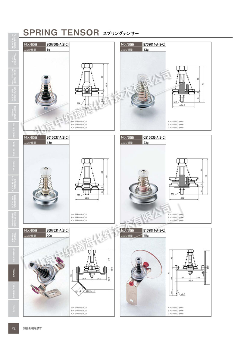 张力器是一种用于生产中控制纱线/电线等的装置。通过张力器对张力的调节,让纱线/电线保持稳定输出的张力,卷绕时可得到美观的最终产品。而成形均匀美观的纱线/电线也为后道加工的稳定提供了保障。因此根据生成条件的不同选择合适的张力器对最终产品的品质非常重要。 我们提供了各种不同类型的张力器供客户选择,关于具体的使用方法及选择方案可咨询我们的销售团队。